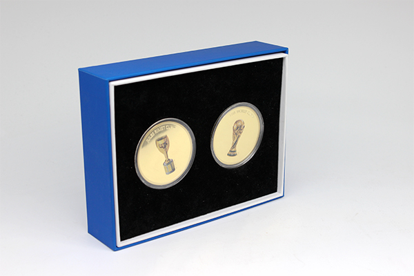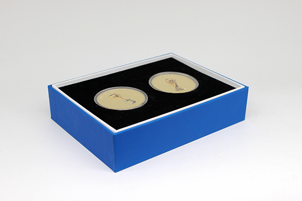 此為2枚禮盒裝FIFA國際足球聯合會紀念幣設計制作案例,深圳市聚福和文創實業有限公司是一家集設計、生產、制作于一體的文創產品定制廠家,為企業提供金銀紀念章設計制作解決方案。公司免費文創設計,專業定做純金、純銀、銅、鋅合金等各種材質紀念幣、紀念章章,找廠家批量定制紀念幣,紀念章就找聚福和。