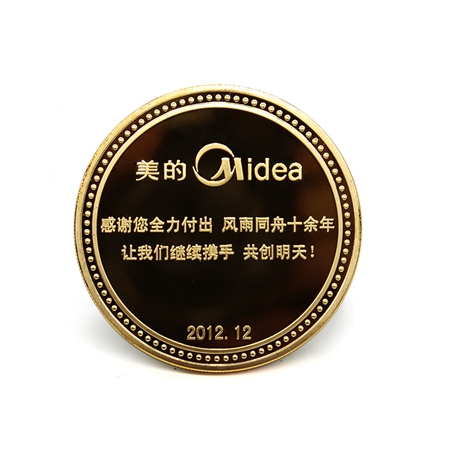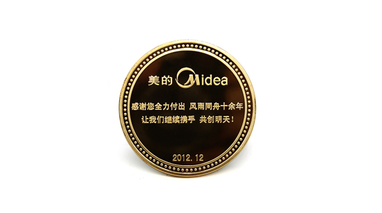 此為美的集團家用空調事業部忠誠服務獎紀念章設計制作案例,深圳市聚福和文創實業有限公司是一家集設計、生產、制作于一體的文創產品定制廠家,為企業提供金銀紀念章設計制作解決方案。公司免費文創設計,專業定做純金、純銀、銅、鋅合金等各種材質紀念幣、紀念章章,找廠家批量定制紀念幣,紀念章就找聚福和。
