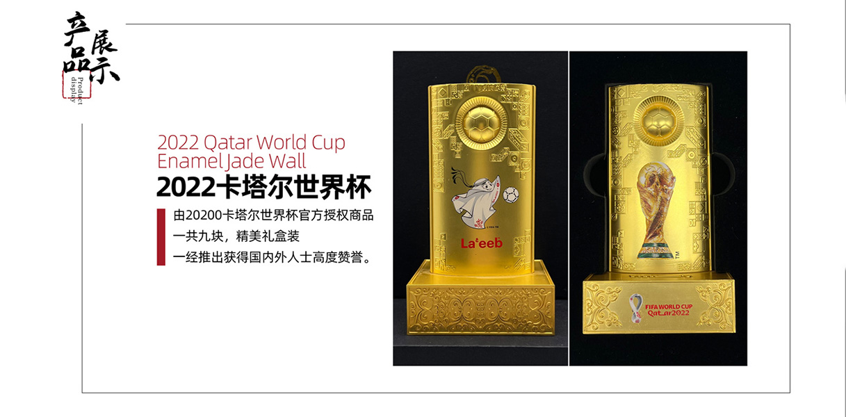2022年,世界杯賽事來到卡塔爾,這是中東國家與世界杯的歷史相逢!為滿足廣大藏友對熱點題材的收藏需求,經FIFA授權發行的《世界杯琺瑯玉璧》正式面世,以四大名玉為載體,采用合金琺瑯鑲玉工藝制作,以中華文明至高禮器玉璧致敬卡塔爾世界杯!中外合壁,碰撞出極具紀念意義與收藏價值的典藏珍品!