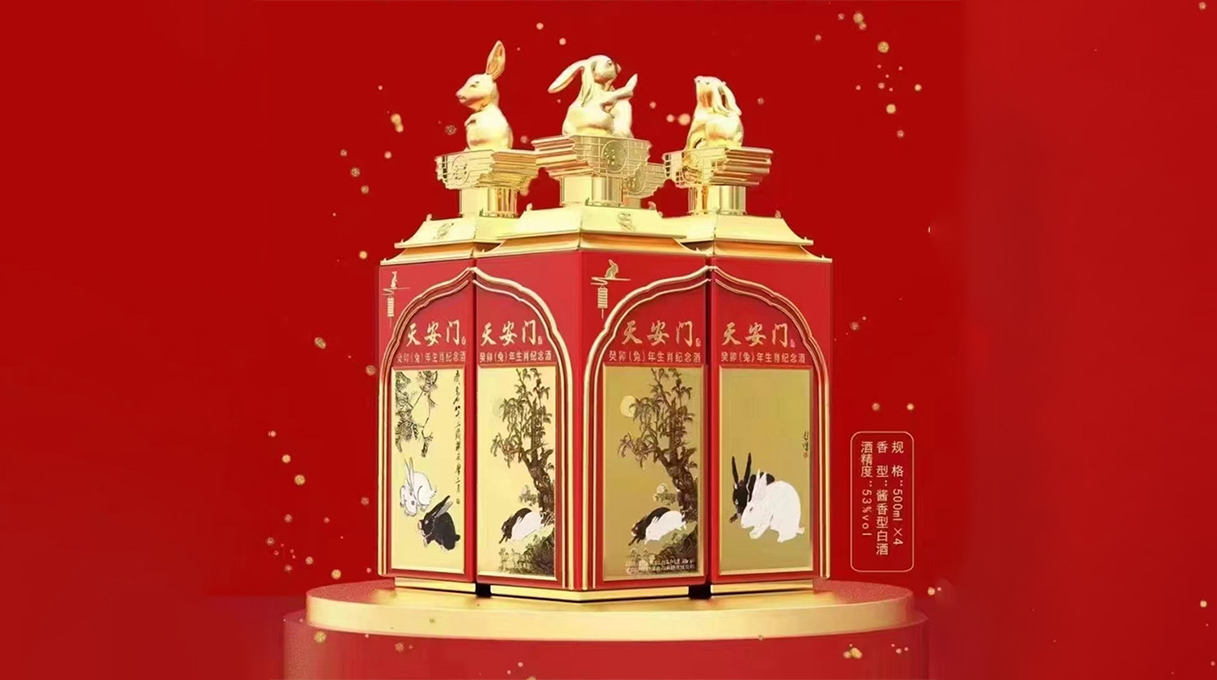 深圳市聚福和是一家集設計、生產、制作于一體的文創白酒包裝定制廠家,為企業提供酒類產品包裝設計制作解決方案。公司免費文創設計,專業定做酒類包裝設計制作、如:白酒外殼包裝設計,酒瓶文創設計、酒盒包裝設計、酒器包裝設計、酒具包裝設計等。此案例為天安門兔年紀念酒文創包裝設計制作