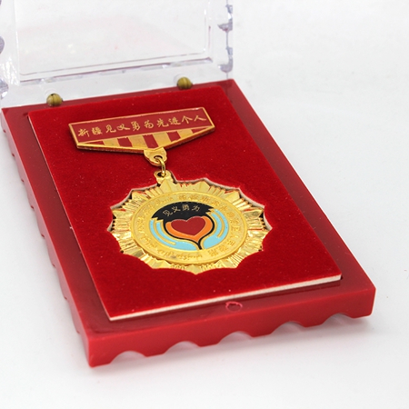 此為見義勇為先進個人勛章禮盒套,事業單位勛章定制案例。深圳市聚福和文創實業有限公司是一家集設計、生產、制作于一體的文創產品定制企業,為企業機構提供文創禮品設計制作解決方案。公司免費文創設計,提供勛章定制,獎章定制,勛章定做,獎章定做等服務,找廠家批量訂做勛章就到聚福和。